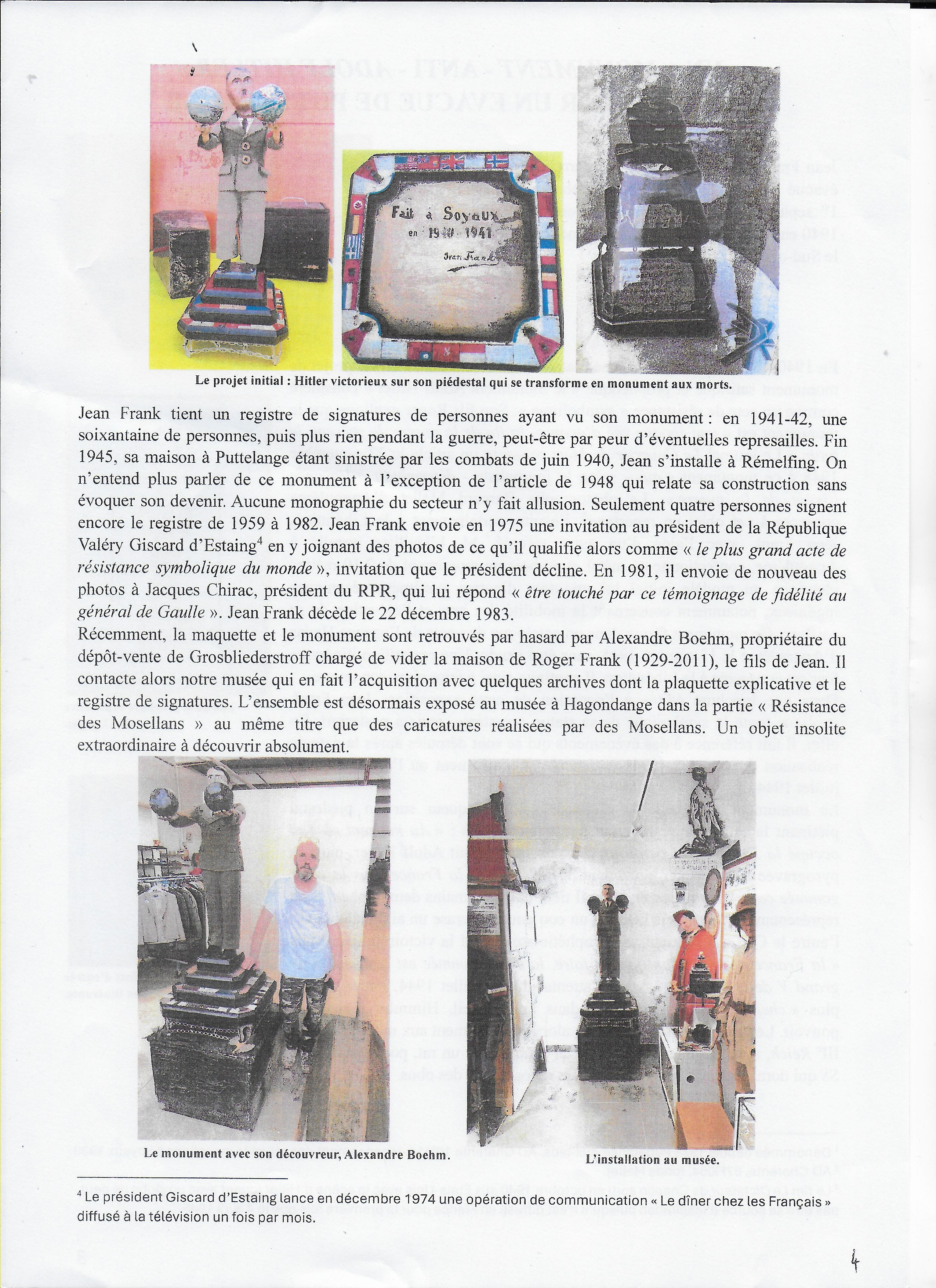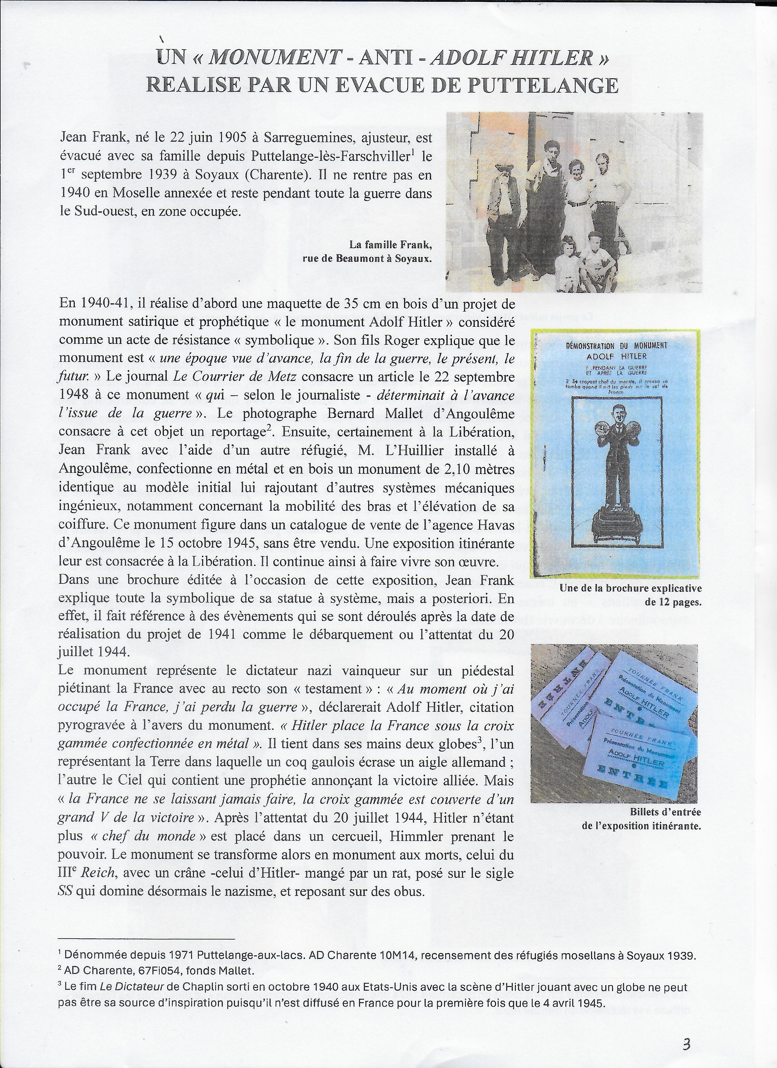 Un monument "Anti-Adolf Hitler " réalisé par un évacué de Puttelange. |
